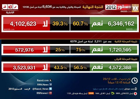 -Hasil pada referendum putaran pertama di 10 provinsi (15/12/2012): YES 56,5% dan NO 43,5%